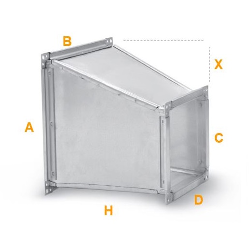 Ces réductions seront fabriqués à la demande selon vos propres dimensions. Le déport sert à éviter un obstacle lors de la réalisation d’un réseau de gaines rectangulaires. Pour sa fabrication qui peut être réalisée en acier galvanisé, en acier noir ou en acier inoxydable, il est nécessaire de bien nous transmettre les différentes côtes :